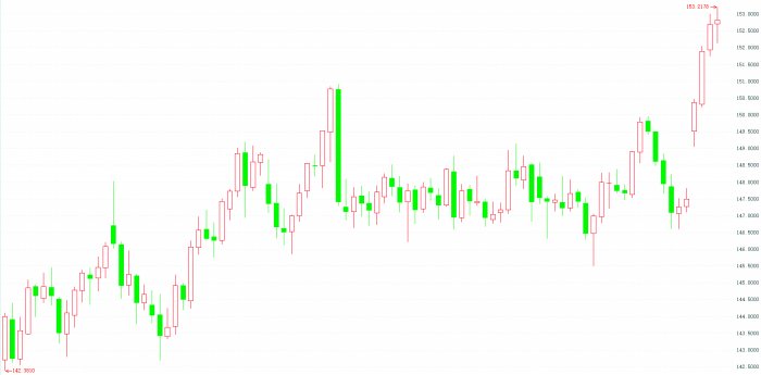 10月6日,日元对美元汇率大幅走弱1.94%,跌破150这一关键关口,随后两天一路走软,接连跌破151、152、153三个关口。